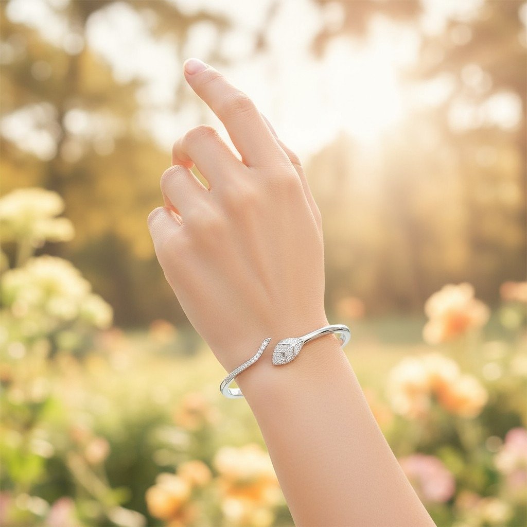 🐍 اسوارة نسائية من الفضة بتصميم شكل ثعبان مزينة بالزركون