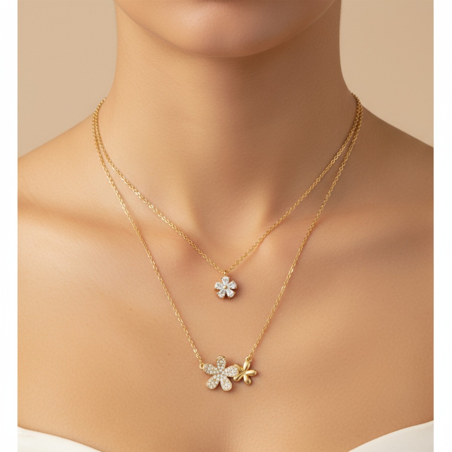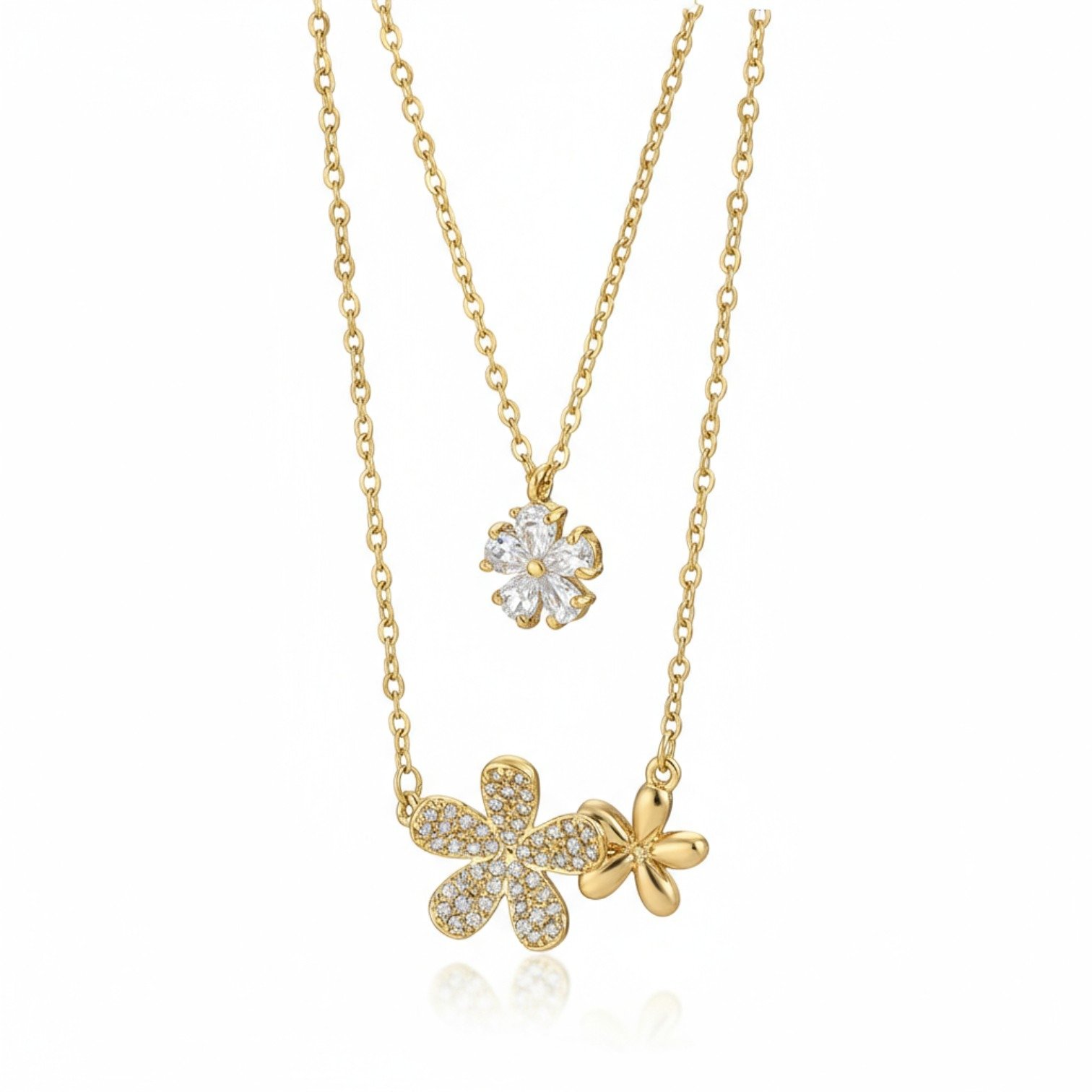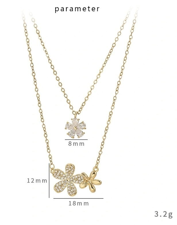 🌸 قلادة نسائية مطلية بالذهب بتصميم ورود مزينة بالزركون