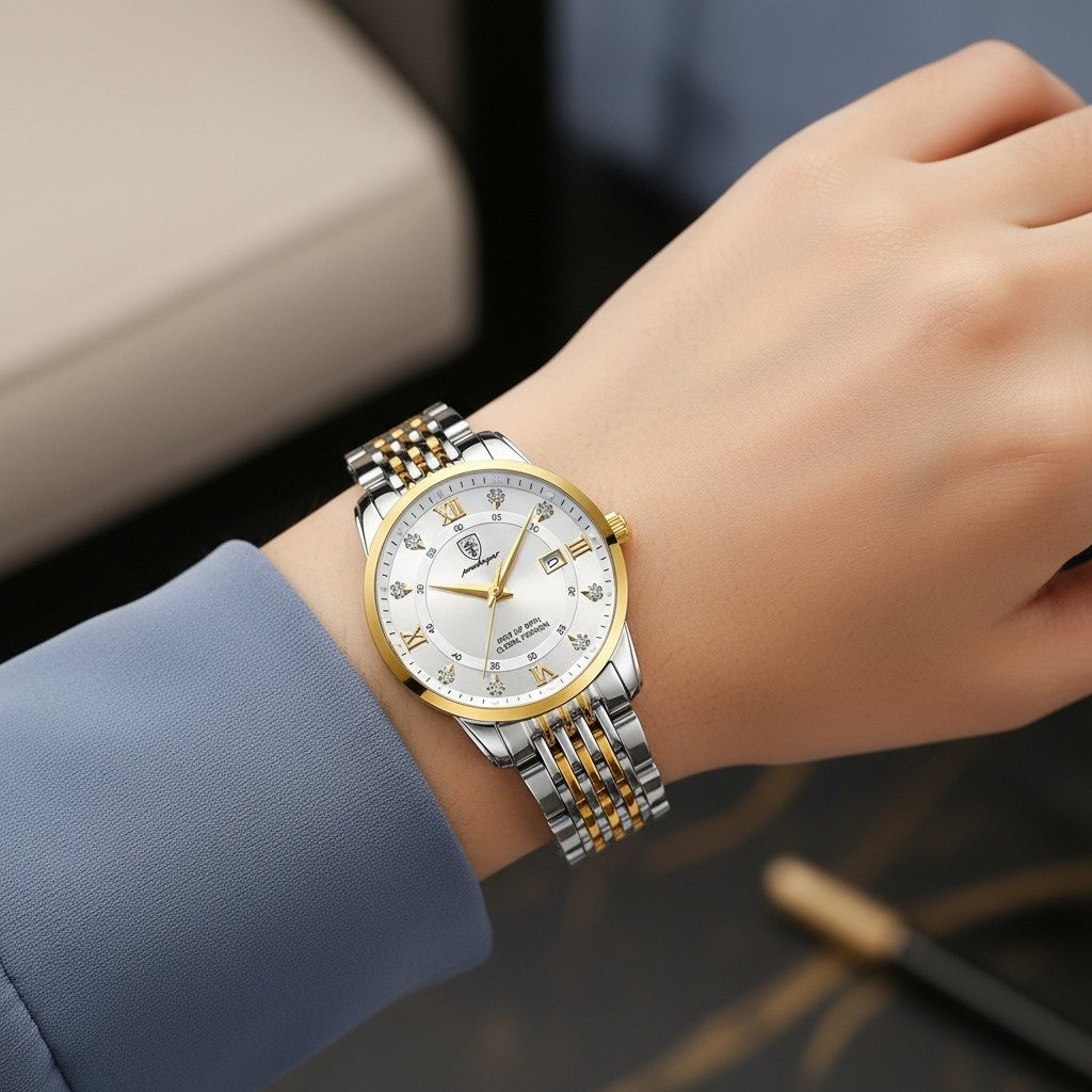 ارتقِ بإطلالتك مع ساعة POEDAGAR النسائية الفاخرة، المصممة بدقة لتمنحك مزيجًا مثاليًا من الأناقة والعملية. هذه الساعة ليست مجرد أداة لمعرفة الوقت، بل قطعة عصرية تضيف لمسة راقية إلى أسلوبك في كل مناسبة.