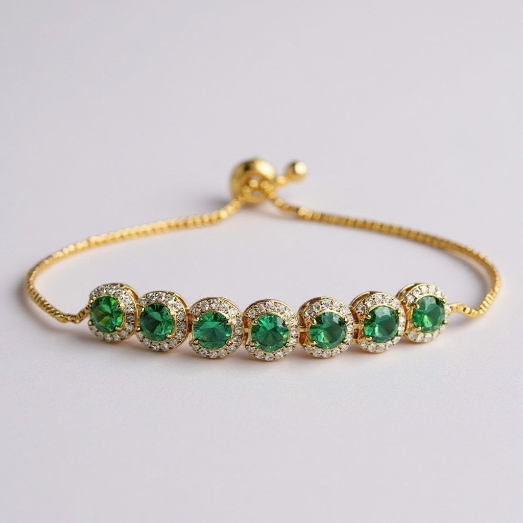 اسورة نسائية رقيقة بكرستالات خضراء مطلية ذهب عيار 18 قيراط موديل - S104